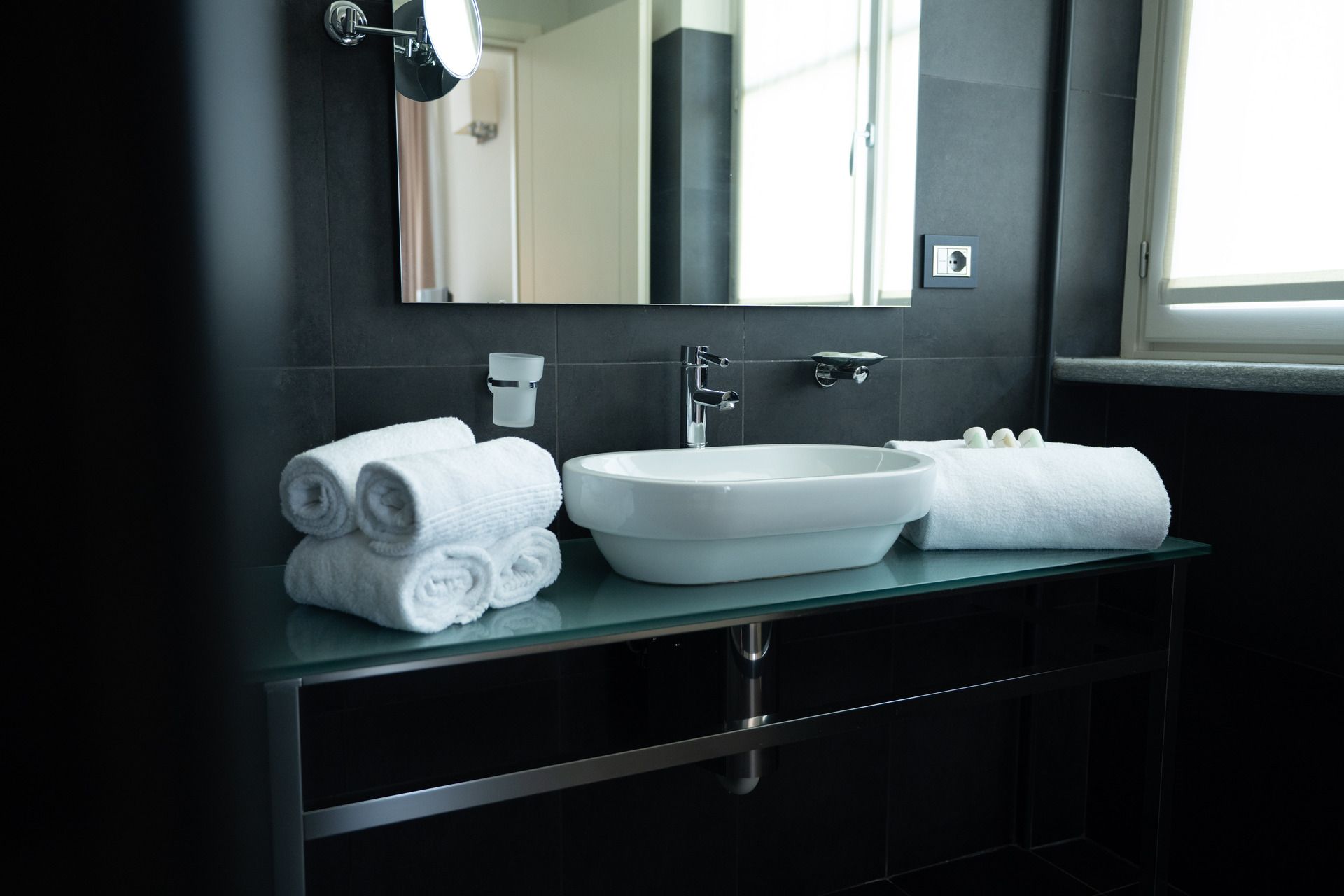specchio luminoso e prodotti di cortesia delicatamente profumati. Tra i comfort: