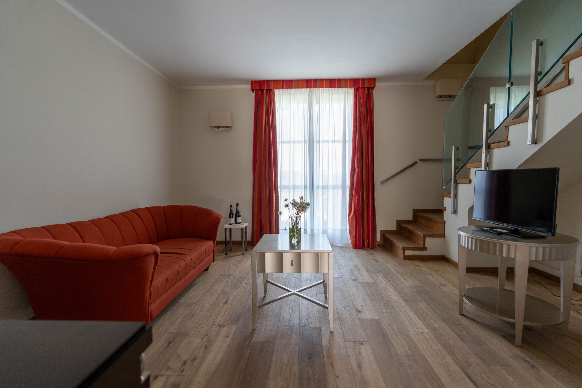 Pensata per offrire privacy, comfort e spazi ampi, la nostra Suite Family è l’ideale per famiglie che desiderano soggiornare insieme senza rinunciare alla comodità. All’ingresso si apre un ampio salotto luminoso, arredato con gusto: divano, tavolino da caffè e TV a schermo piatto creano un’area perfetta per rilassarsi e condividere momenti insieme.
